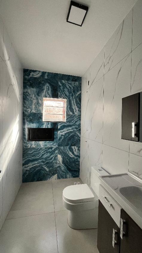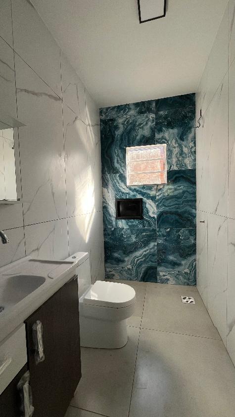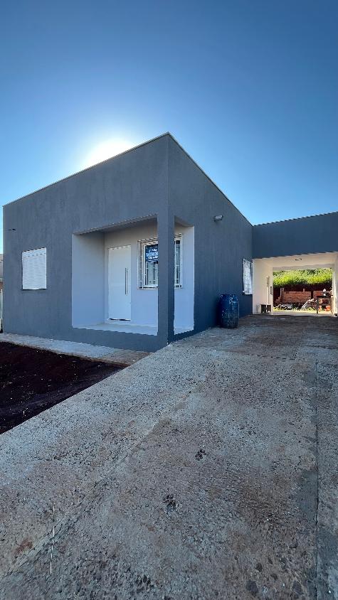 Casa nova com forro de lage, 3 dormitórios com suíte, garagem e churrasqueira.